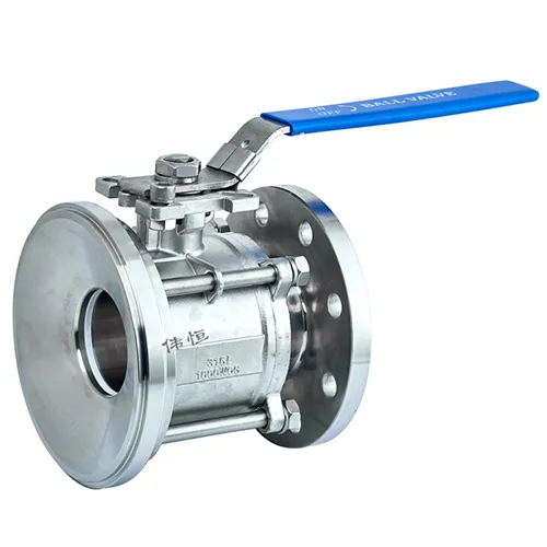 | nome | Válvula de esfera com flange inferior do tanque sanitário de três peças |